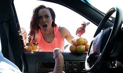 Ugly immense bitch jerks off dick in the car