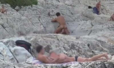 非常灼热和神话般的法国二人在海滩上隐蔽的摄像头
