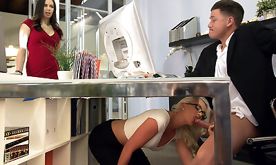 混杂的秘书给她的老板一个吮吸下表