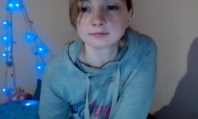 19 yr old busty webcam gal with innocent face touches her big natural ti