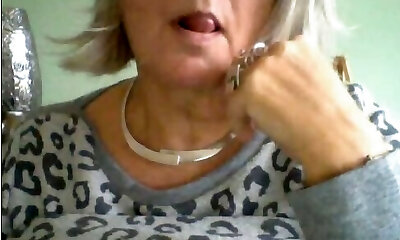 Wild granny fists herself on webcam